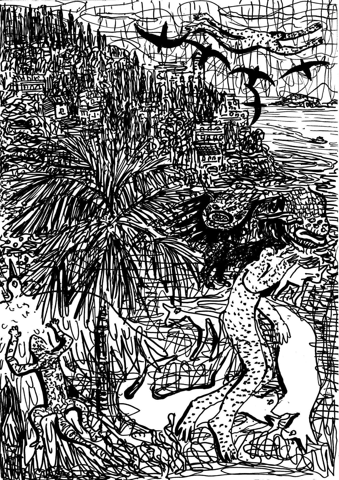 Summer Break is a visual diary that I undertook in the summer of 2022. Mixing real-life experiences and dark fantasy, it follows the surreal adventures of my alter-ego. I improvised many of the drawings in real locations in Edinburgh or in the countries (Croatia, Germany) I visited.