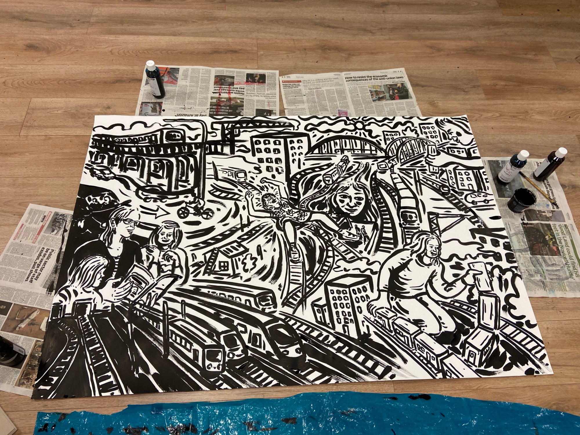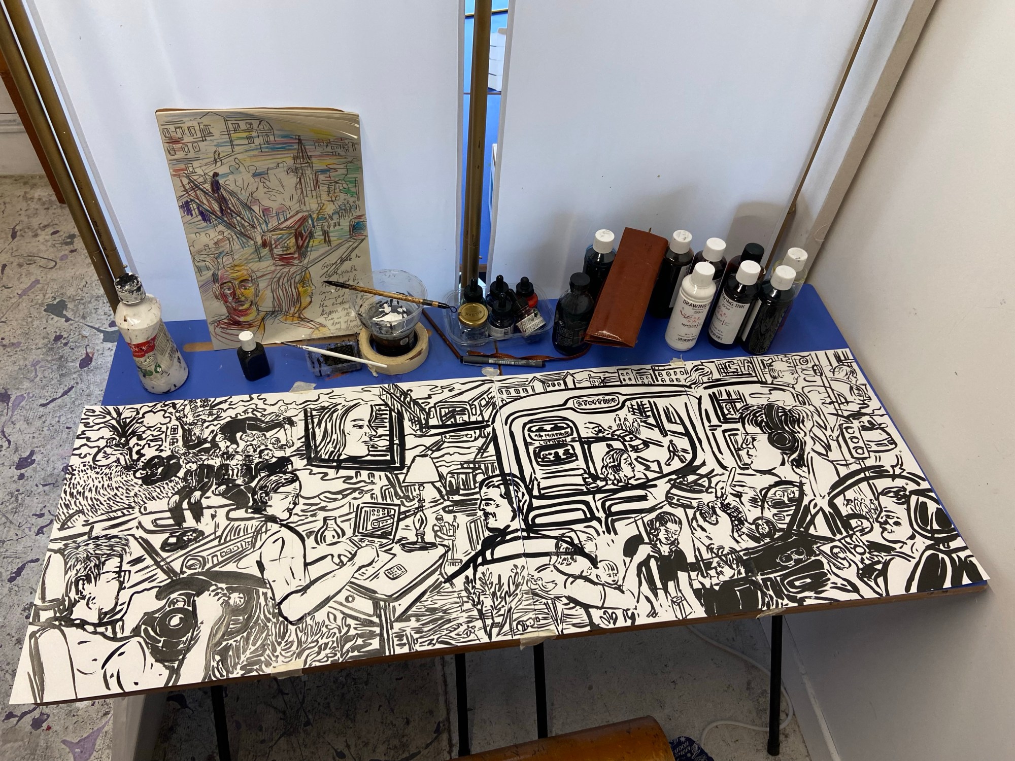 In August 2023, I was selected by The Forest to be the next artist in residence at Sett Studios in Edinburgh. They gave me access to a shared studio space from early September to early November, with the possibility to use a room where I could work on large scale ink drawings and paintings.