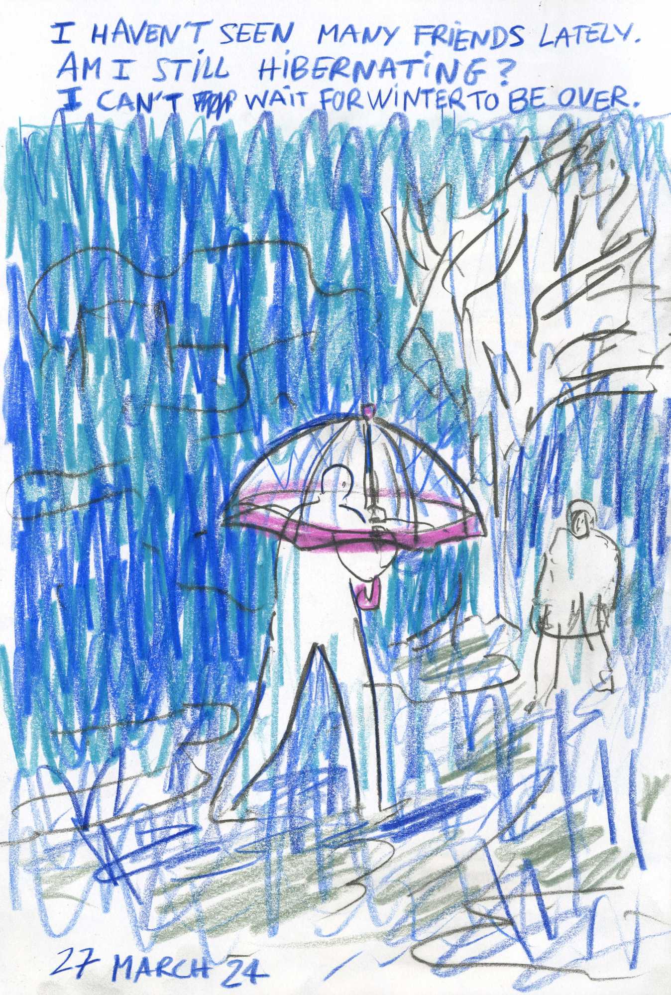 Last winter felt like the longest winter ever. Perhaps every winter in Edinburgh feels like that. Drawn and written between September 2023 and June 2024, Ways of Feeling is not only a record of the Scottish weather